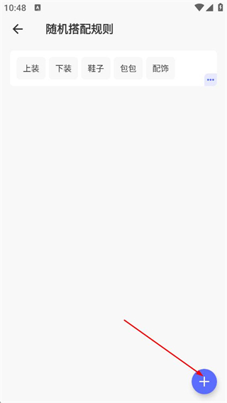 4、在随机搭配规则页面,点击右下角的加号按钮,进入创建规则页面。