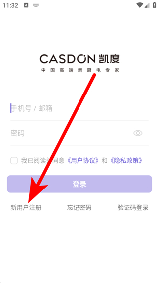2、在密码登录页面,点击新用户注册选项,进入注册页面。