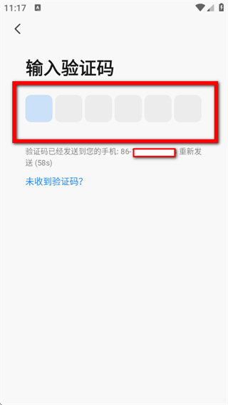 4、在输入验证码页面,填写收到的验证码,完成注册流程。
