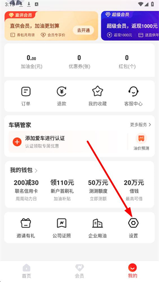 1、进入能链团油应用,在我的页面中,点击设置选项,进入设置页面。