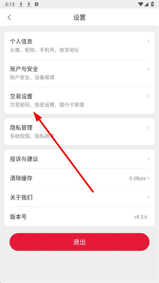2、在设置页面,点击交易设置选项,进入交易相关的配置页面。