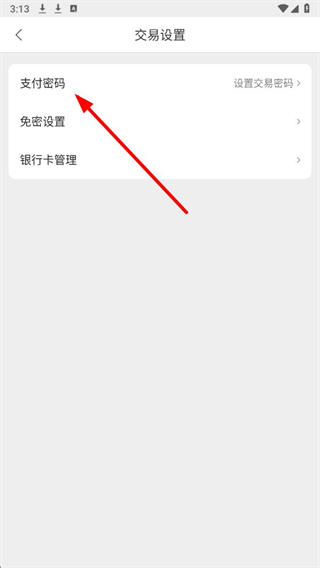 3、在交易设置页面,点击支付密码对应的设置交易密码选项,进入密码设置页面。