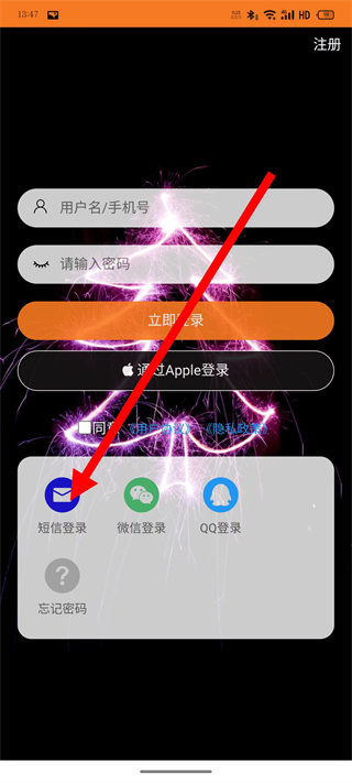 1、在指间宝的注册登录页面,点击短信登录,进入手机号登录页面。