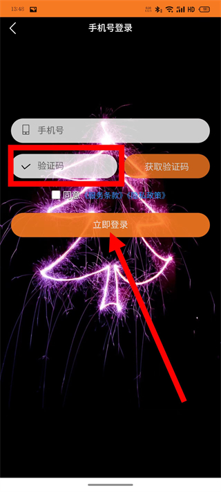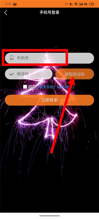 2、在手机号登录页面,输入手机号,点击获取验证码。
