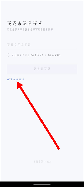 1、在巨懂车的欢迎页面,点击账号密码登录,进入账号密码登录页面。