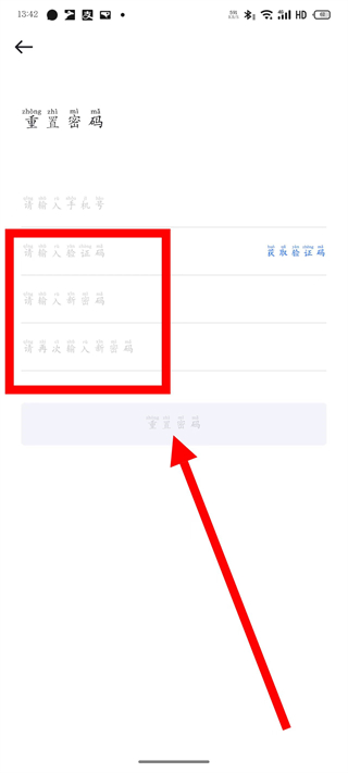 4、输入验证码和新密码,完成所有信息填写后,点击重置密码,完成密码重置。