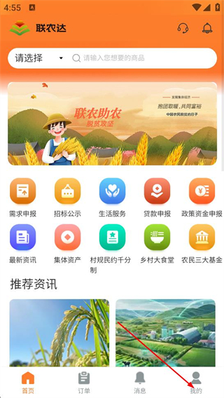1、在联农达首页,点击底部的我的选项,进入个人中心页面。