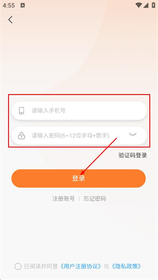 3、在登录界面,填写手机号和密码后,并点击登录按钮,完成登录。