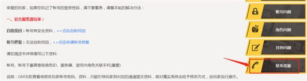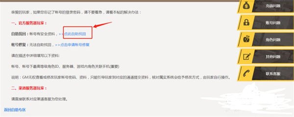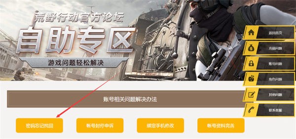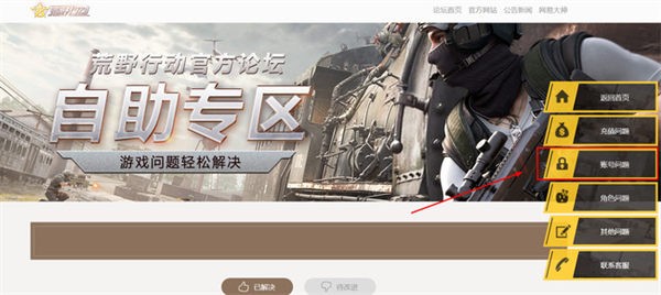 1、先进入游戏官网论坛,点击右侧的“账号问题”。