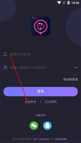 3、在注册页面填写手机号、获取并输入验证码,设置密码,勾选协议后点击注册。