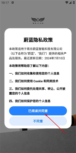 1、在使用协议隐私政策弹窗中点击已阅读并同意,进入登录页面。
