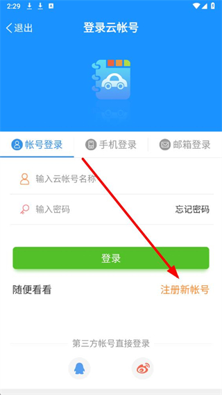 1、在登录云帐号页面,点击注册新帐号选项,进入注册云帐号的操作页面。