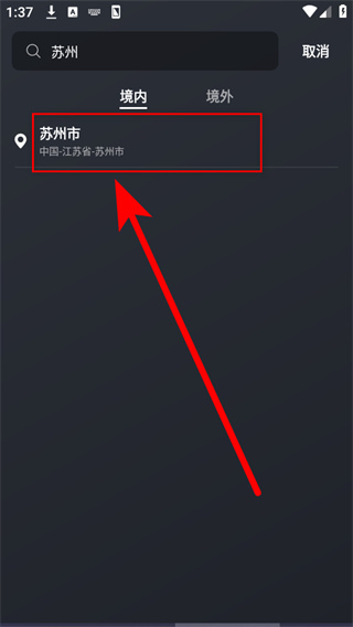 2、在搜索框中输入想要添加的城市名称,触发搜索结果展示。