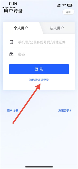 3、若需要短信验证码登录,点击短信验证码登录选项,进入短信登录页面。