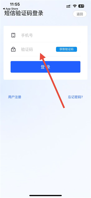 4、在短信验证码登录页面,输入手机号,获取验证码,点击登录,即可完成登录操作。
