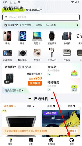 1、进入拍拍严选主界面后,点击底部我的选项,进入个人相关页面。