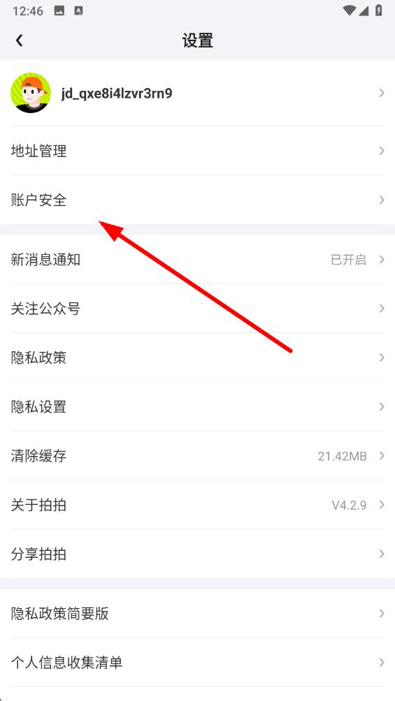 2、在设置界面中找到并点击账户安全选项,进入账户安全管理界面。