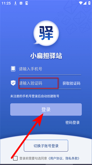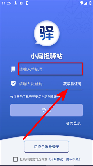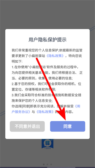 1、打开驿站小扁担,在弹出的弹窗中点击同意,进入登录界面。