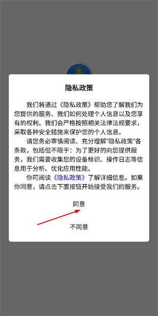 1、在使用协议隐私政策弹窗中点击同意按钮,进入登录选择页面。