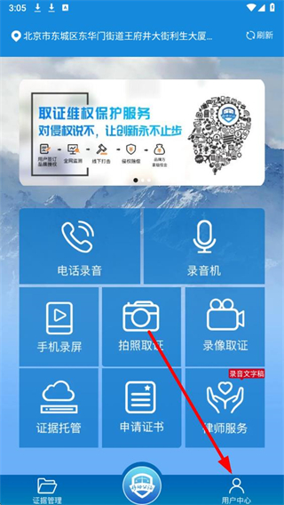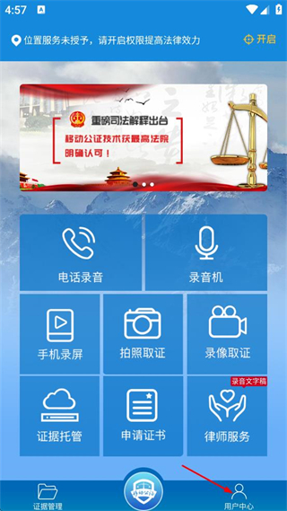 1、进入移动公证app,点击底部用户中心选项,进入用户中心页面。