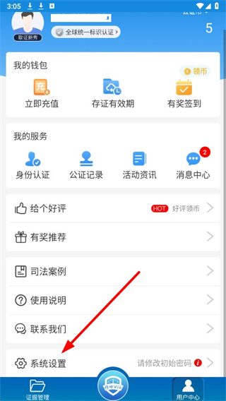 2、在用户中心页面,点击系统设置选项,进入系统设置的操作页面。
