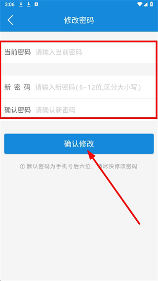 4、依次输入当前密码、新密码并确认密码,点击确认修改完成密码修改操作。