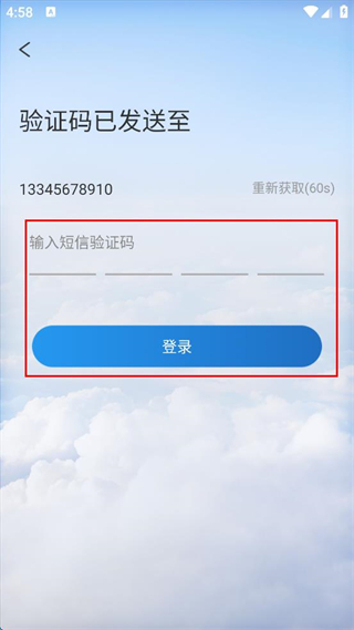 3、在验证码输入页面,输入收到的短信验证码。