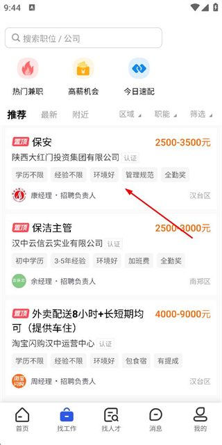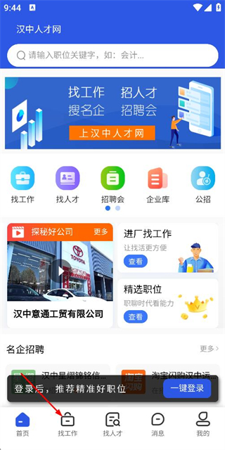 1、在汉中人才网首页点击底部的找工作选项,进入职位列表页面。