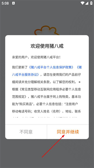 1、阅读个人信息保护政策和平台服务协议后,点击同意并继续。