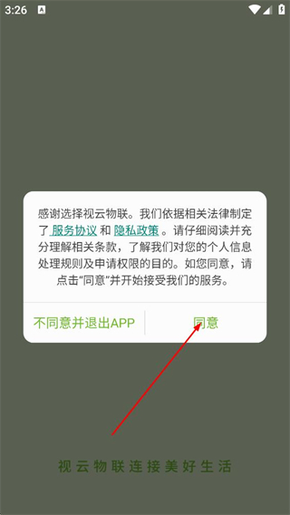 1、阅读服务协议和隐私政策后,点击同意按钮。