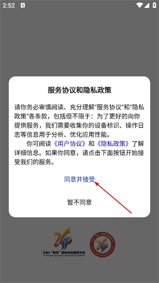 1、阅读用户协议和隐私政策后,点击同意并接受。