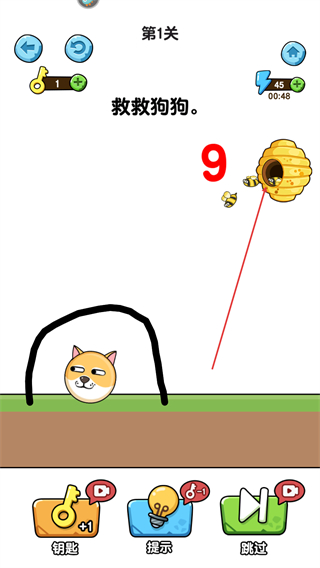以手绘线条为核心操作方式,玩家可自由绘制不同形状的线条,搭建防护或引导路径,阻挡危险与蜜蜂靠近狗狗,玩法简单却充满创意与策略性。