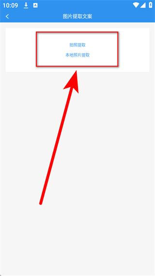 3、在图片提取文案页面,点击本地图片提取,进入设备的图片选择界面。