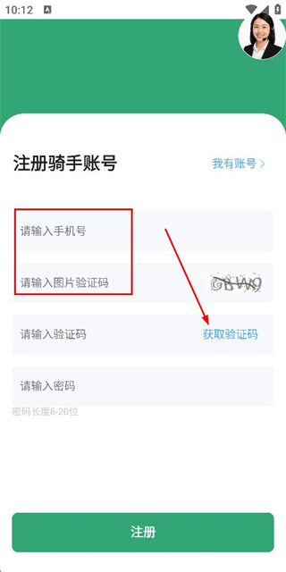 2、在注册账号页面填写手机号、图片验证码后,点击获取验证码。