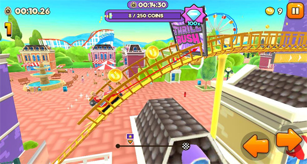 3、在过山车行进过程中,收集沿途出现的金币,积累游戏内的资源数值。