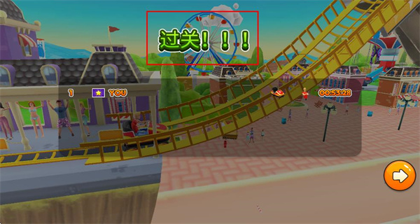 4、操控过山车顺利完成轨道行进,直至界面显示过关提示,结束当前关卡。