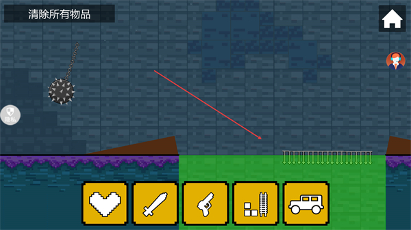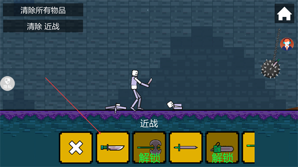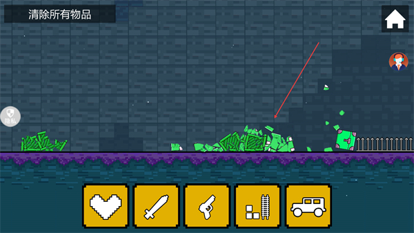 1、在清除所有物品关卡,选择武器如剑攻击绿色物品,推进清除进度。