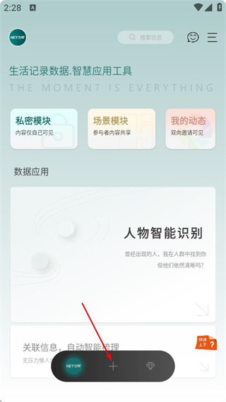 1、进入HEY少年后,点击底部的+按钮,可打开内容添加模块选择页面。