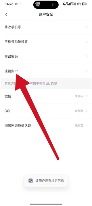 4、在账户安全页面点击注销账户,进入注销账号的权益说明页面。
