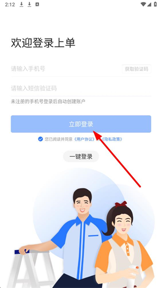 1、打开上单app应用后,在页面中找到验证码登录选项并点击,进入验证码登录页面。