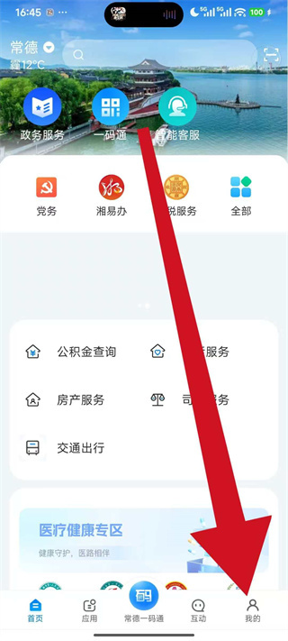 1、打开我的常德,点击底部导航栏的我的选项,进入个人中心页面。