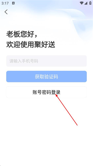 2、在欢迎页面,点击手机号注册/登录的按钮,进入对应操作页面。