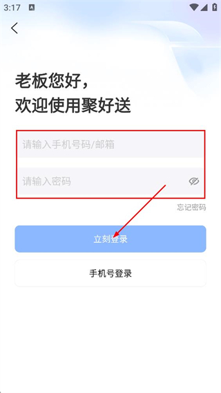 4、在账号密码登录界面,填写手机号码/邮箱和密码后,点击立刻登录完成登录。