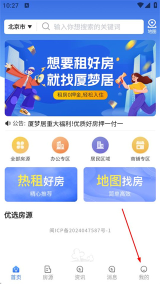 1、进入厦梦居后,点击底部的我的选项,可进入登录页面。