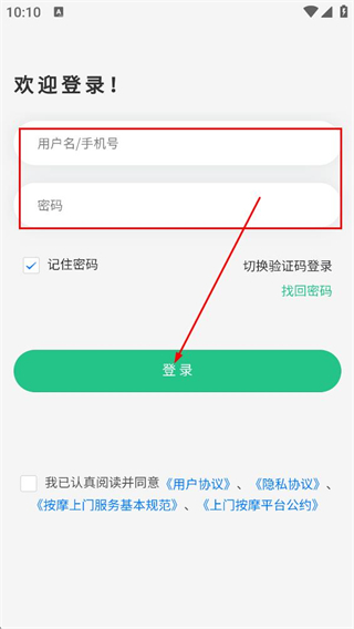 4、在账号密码登录界面,填写用户名/手机号和密码,点击登录即可完成。