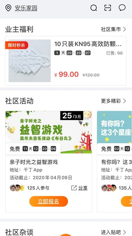 社区动态推送,不仅可以在此找到社区资讯而且社区活动可以在线报名