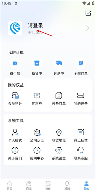 2、在个人中心页面点击登录,进入登录页面。