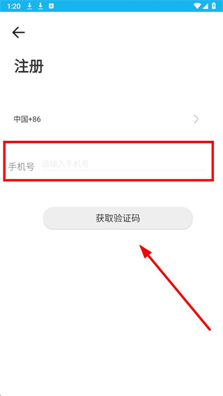 3、在注册页面输入手机号码,点击获取验证码按钮,获取注册所需的短信验证码。