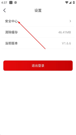 3、在设置页面,点击安全中心选项,进入安全中心页面。