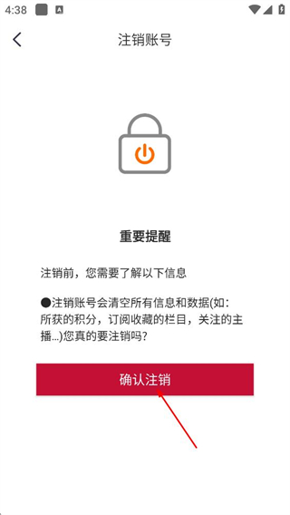 6、在重要提醒页面,点击确认注销的按钮,完成账号注销操作。